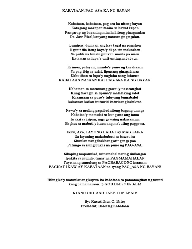 Talumpati Kabataan Pag Asa Pa Nga Ba Ng Bayan