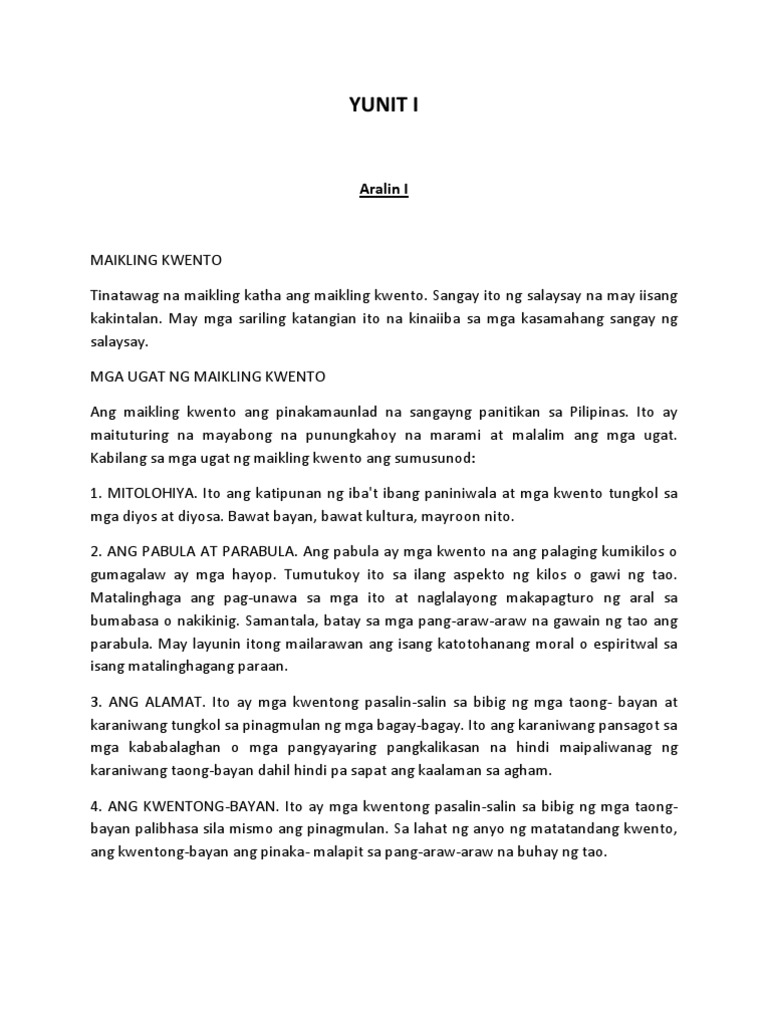 Kaugnay nito ang alamat at mga mito. Philippine epics are lengthy narrative poems based on oral tradition. Walang opisyal na pinagmulan ang maikling kwento bago pa man dumating ang mga dalubhasa dito sa mundo ay ibat ibang maiikling kwento ang dumadaloy sa ugat ng.