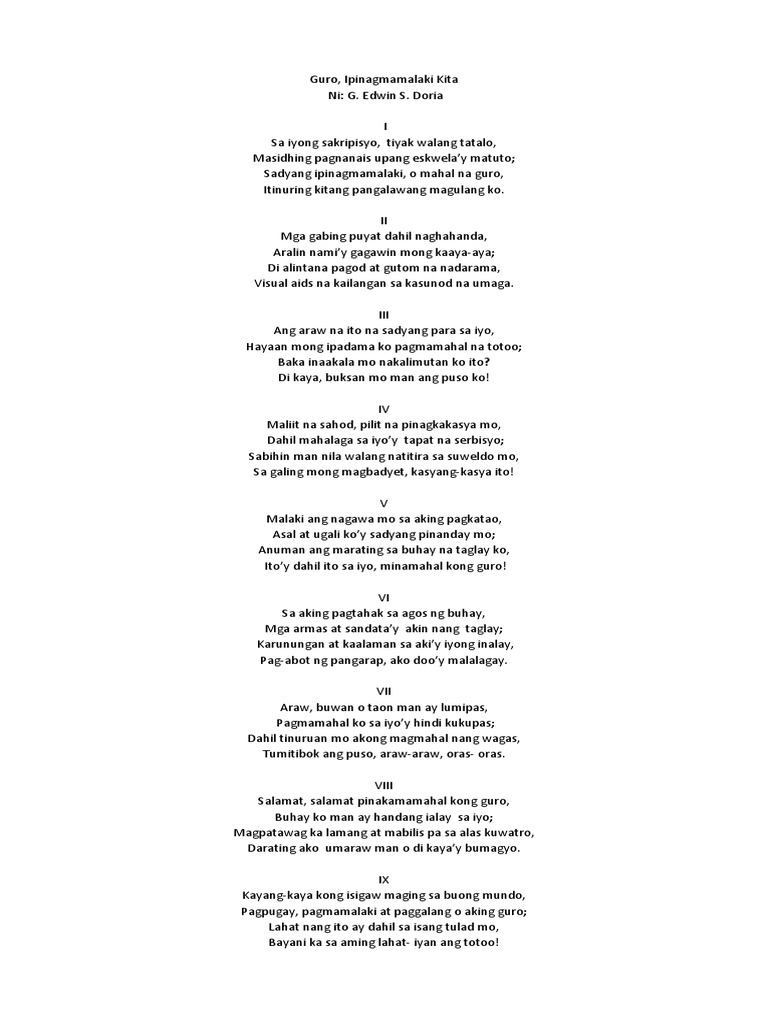 Guro Ipinagmamalaki Kita Isang Tula Pdf